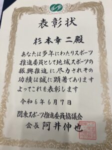 2024年6月7日、東京ミニバレー協会会長の杉本幸二さんが目黒区のスポーツ推進委員として17年貢献されたことから、関東研究大会の千葉大会において関東スポーツ推進委員協議会表彰者として表彰されました。