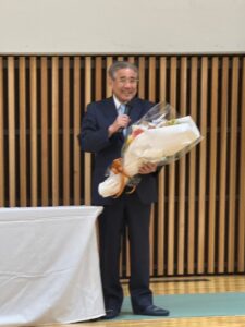 お花をもらってびっくりされてる鈴木先生