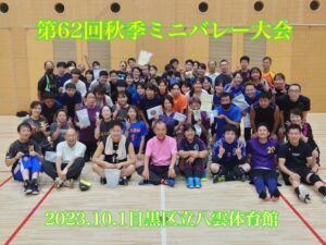 2023年10月1日に恒例の目黒区体育祭秋季ミニバレー大会が開催されました。