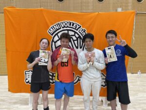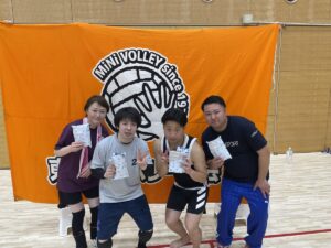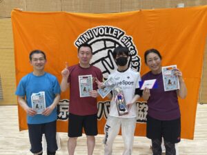 この大会は、くじで分かれたチームで対戦する大会で、まず、チーム分けにドキドキでした。初めて会う人、顔は知っててもチームを組むのは初めての人など、とても新鮮な気持ちでミニバレーを楽しめる大会です。今回はMVあびこから4名で参加しましたが、2名が同じチームになり、あとの2名は別々のチームに分かれて対戦となりました。